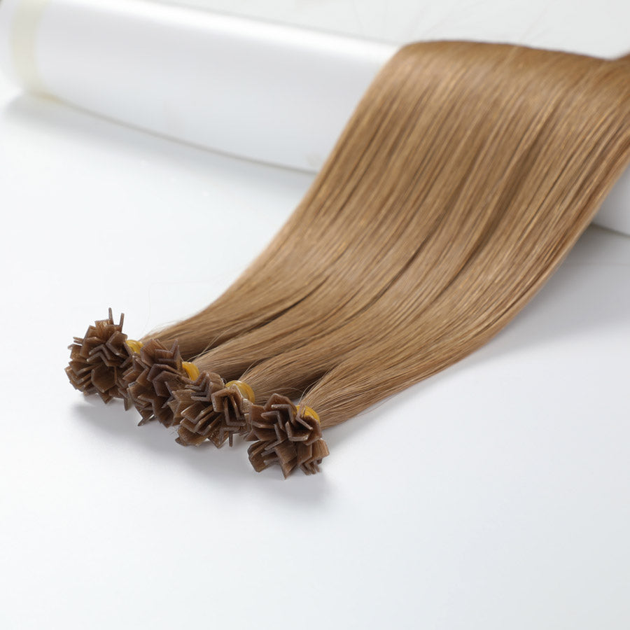For those seeking durable, natural-looking hair, V-tip fusion extensions provide the perfect solution. Pre-bonded and applied strand by strand, they allow for effortless movement and flexibility. Using a professional extension iron, the keratin bonds are safely melted and fused to your natural hair, ensuring a damage-free application.