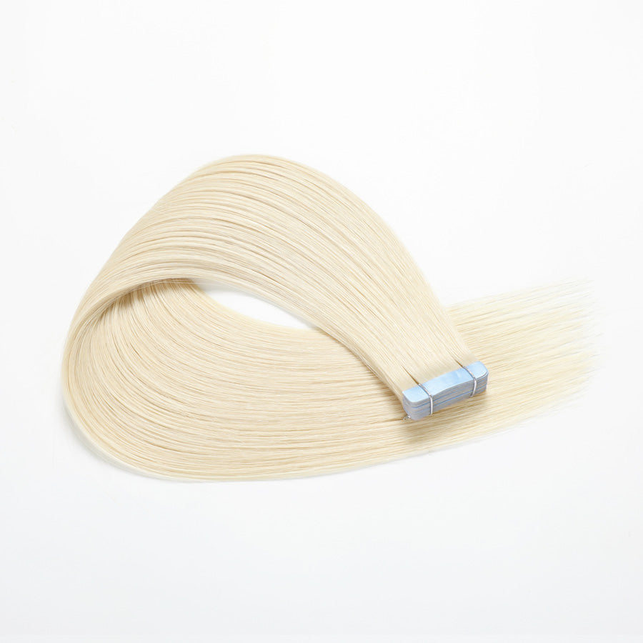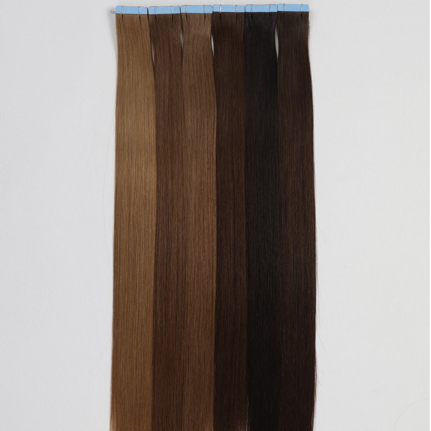 At Ruiz Beauty Supply Inc., our Tape-In extensions are designed with ultra-thin, lightweight adhesive tops that lay flat against the scalp for a discreet, natural finish. The tape top measures approximately 40mm x 8mm with a thickness of just 0.5–0.6mm, making it one of the thinnest options available. This ultra-slim profile ensures seamless blending and maximum comfort during wear. The extensions are perfect for adding volume and length without putting stress on natural hair, as the weight is evenly distributed across each section.